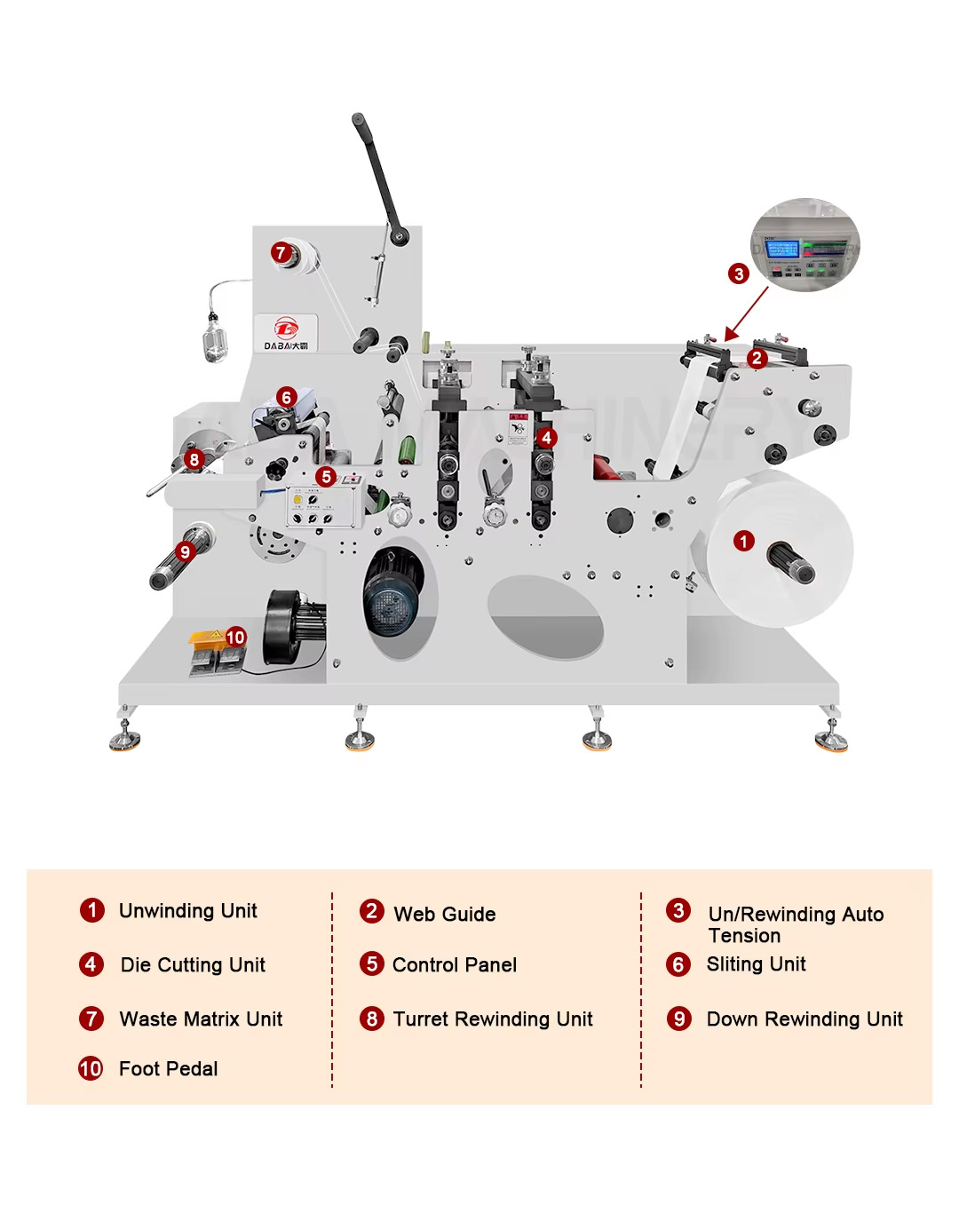 This machine has the characteristic of compact structure, fast speed, high efficiency, easy operation, accurate slitting and stably running and so on features.It is an ideal machine for cutting blank labels.