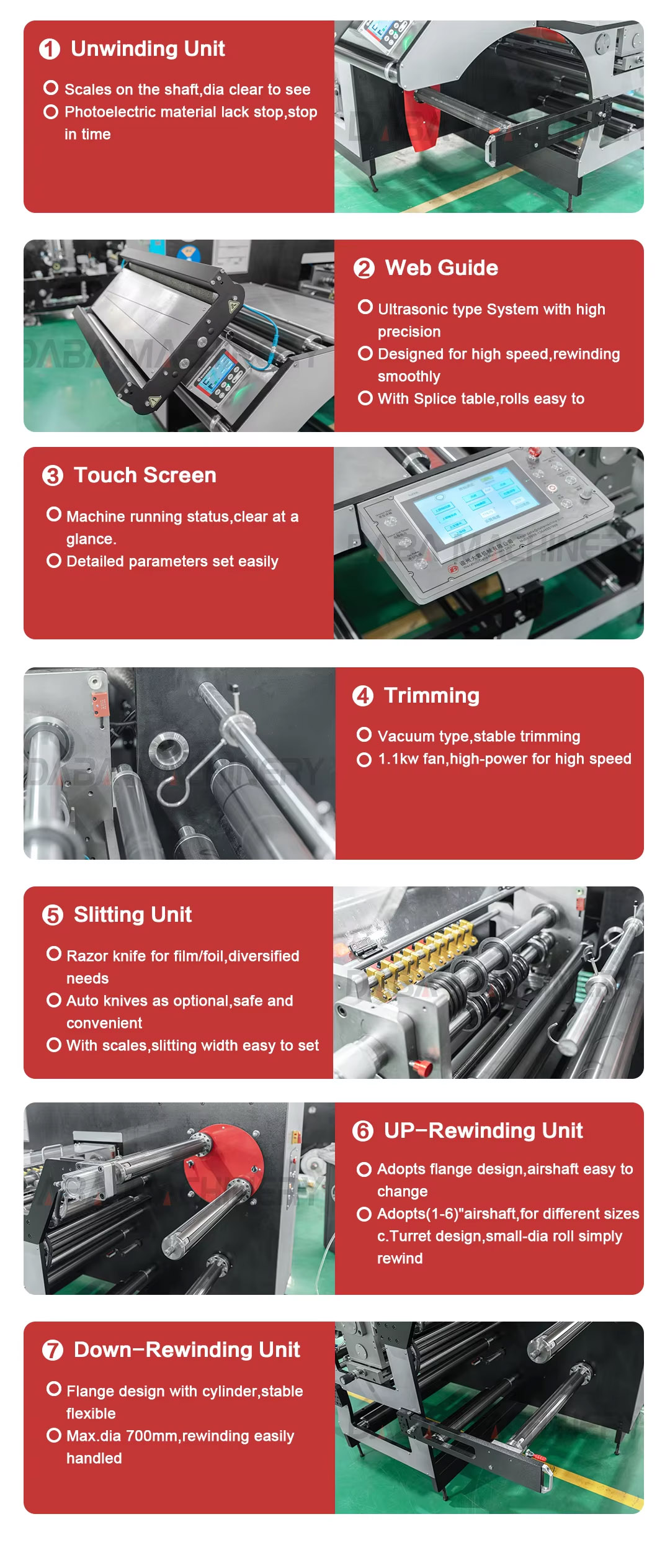 3. This machine can slit various materials including paper, adhesive materials, films, aluminum foil and some special materials.