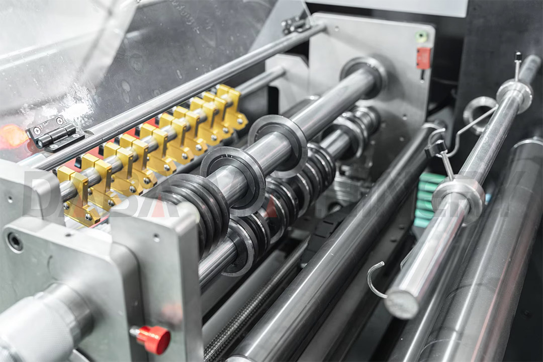 4. With our new development, semi automatic circular blade adjustment system, the slitting width can be set in the system, and the machine will adjust the width automatically.