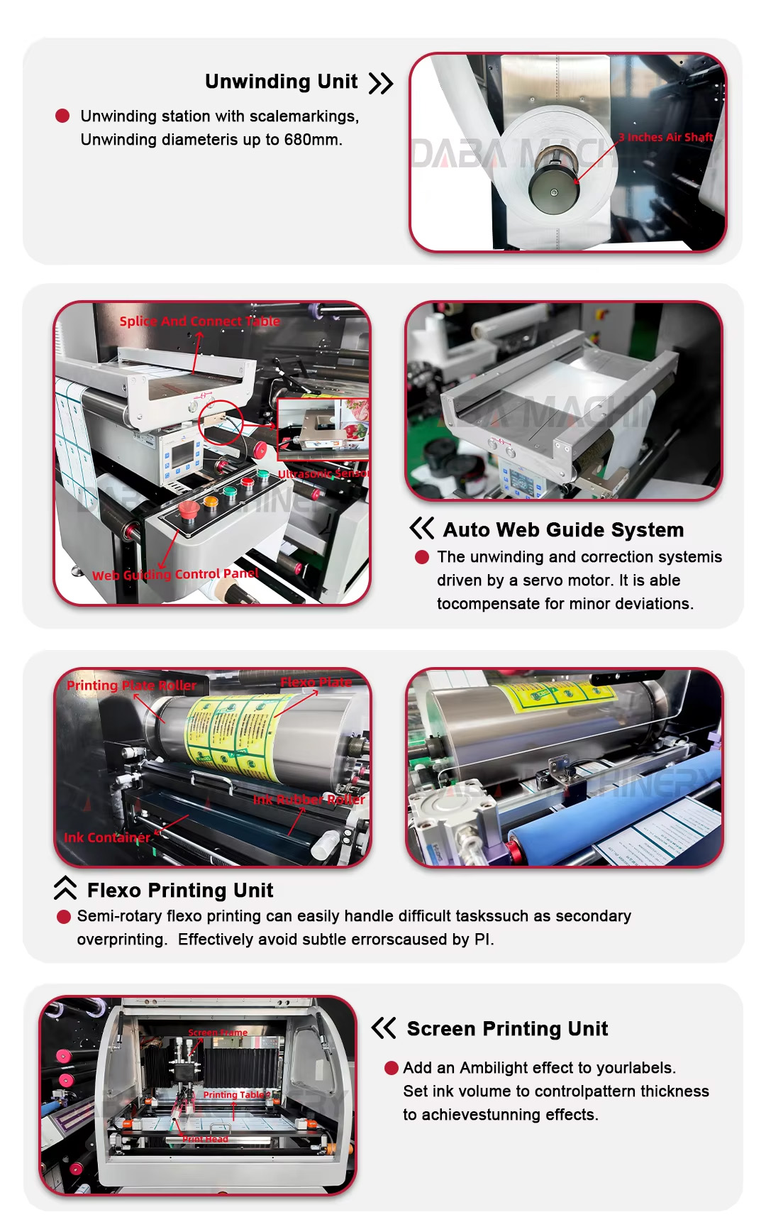 The whole machine using total 13pcs servo motor to gurantee stable running, it's intermittent model with flexo printing unit, die cutting ahd slitting, ect.