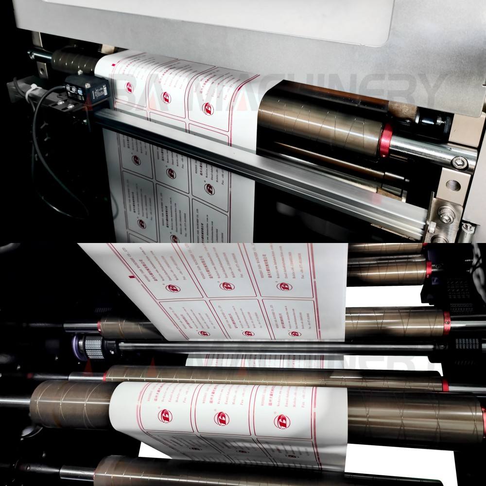 In rotary die-cutting, it can perform kiss-cutting, punching, inner die-cutting, and post-die-cutting, with a tracking sensor.