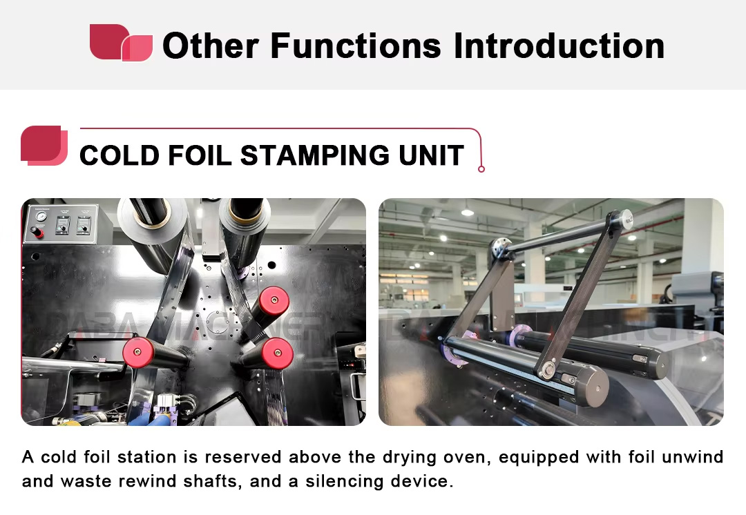 In flexographic printing, it can perform cold foil stamping, vanishing, lamination, and printing, and also accepts multi color printing.